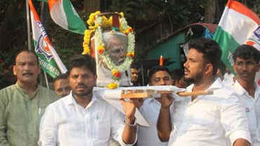 Mangaluru: Youth Congress protests LPG price hike with mock funeral procession