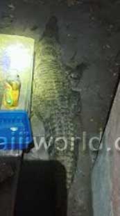7-ft crocodile invades Bantwal home courtyard in wee hours near Nethravathi