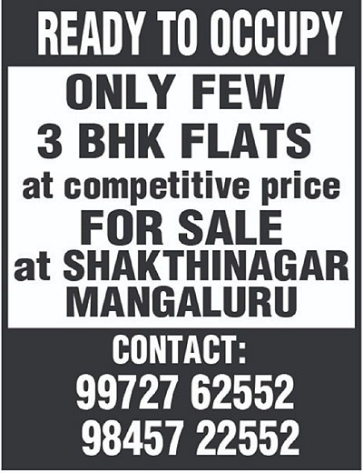 Ready to occupy 3 BHK flats available at Shakthinagar, Mangalore