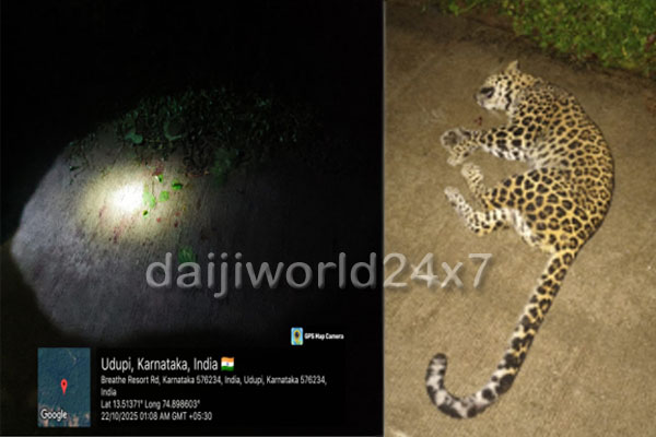 ಉಡುಪಿ : ಚಿರತೆಗೆ ಬೈಕ್ ಡಿಕ್ಕಿ - ಸವಾರ ಗಂಭೀರ, ಚಿರತೆ ಸಾವು