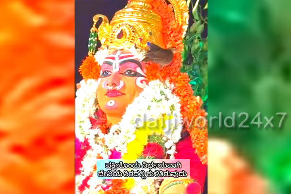 ಬಂಟ್ವಾಳ : ದೇವಿಯ ಶಿರದಲ್ಲಿ ಕುಳಿತ ಹಕ್ಕಿ!