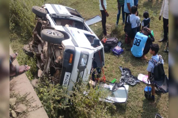 ರಸ್ತೆ ಹೊಂಡದಿಂದ ಶಾಲಾ ವಾಹನ ಅಪಘಾತ - 10 ಮಕ್ಕಳಿಗೆ ಗಾಯ