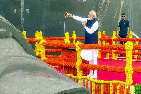 ಉಕ್ಕಿನ ಮನುಷ್ಯನಿಗೆ ಹೂವಿನ ನಮನ ಸಲ್ಲಿಸಿದ ಪ್ರಧಾನಿ ಮೋದಿ
