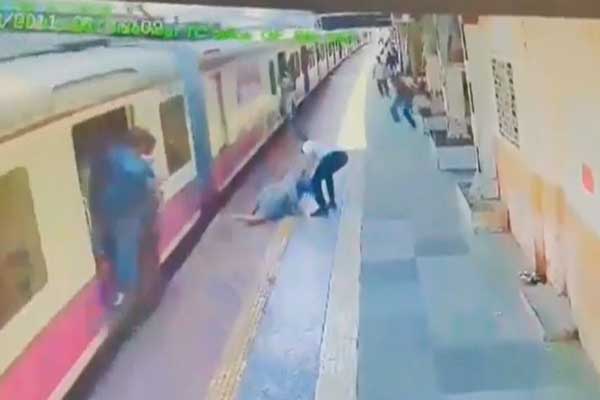 ಚಲಿಸುತ್ತಿರುವ ರೈಲಿಂದ ಬಿದ್ದ ಮಹಿಳೆಯ ರಕ್ಷಣೆ