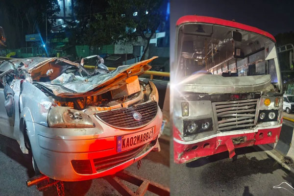 ಬಸ್ - ಕಾರಿನ ನಡುವೆ ಭೀಕರ ಅಪಘಾತ : ಐವರು ದುರ್ಮರಣ