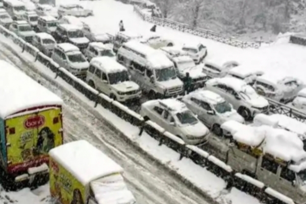 ಮನಾಲಿಯಲ್ಲಿ ಭಾರೀ ಹಿಮಪಾತ ಹಿನ್ನೆಲೆ 8 ಕಿಮೀ ಟ್ರಾಫಿಕ್ ಜಾಮ್; ಪ್ರವಾಸಿಗರ ಪರದಾಟ
