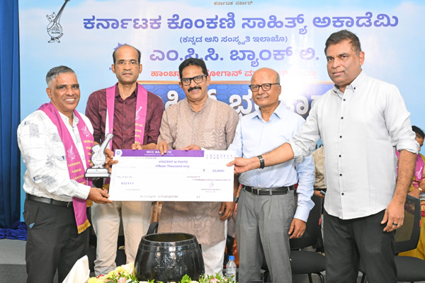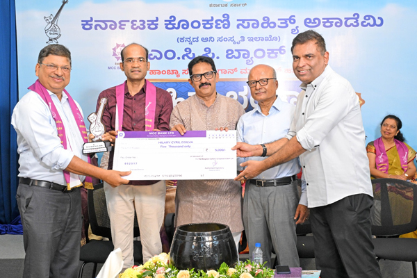 ಕೊಂಕಣಿ ಅಕಾಡೆಮಿಯು ಹಮ್ಮಿಕೊಂಡ ಸಾಹಿತ್ಯ ಸ್ಪರ್ಧೆಯಲ್ಲಿ ಕಾದಂಬರಿ ವಿಭಾಗದ ವಿಜೇತರಾದ ರೋಶನ್ ಮೆಲ್ಕಿ ಸಿಕ್ವೇರಾ, ವಿನ್ಸೆಂಟ್ ಪಿಂಟೊ, ಆಂಜೆಲೊರ್, ಸ್ಟೀಫನ್ ಮಸ್ಕರೇನ್ಹಸ್ (ಹೇಮಾಚಾರ್ಯ) ಹಾಗೂ ಕಿರುನಾಟಕ ವಿಭಾಗದ ವಿಜೇತರಾದ ಹಿಲರಿ ಡಿಸಿಲ್ವ (ಪ್ರಸನ್ನ್ ನಿಡ್ಡೋಡಿ), ಫಾ| ಅನಿಲ್ ಅವಿಲ್ಡ್ ಲೋಬೊ ಇವರಿಗೆ ಎಂ.ಸಿ.ಸಿ. ಬ್ಯಾಂಕ್ ಪ್ರಾಯೋಜಕತ್ವದಲ್ಲಿ ಬಹುಮಾನಗಳನ್ನು ವಿತರಿಸಲಾಯಿತು.