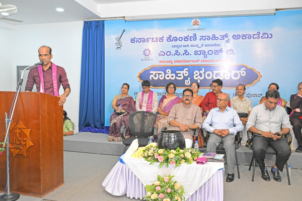 ಮಂಗಳೂರು, ಅ. 19 (DaijiworldNews/AA): ಕರ್ನಾಟಕ ಕೊಂಕಣಿ ಸಾಹಿತ್ಯ ಅಕಾಡೆಮಿಯು ಎಂ.ಸಿ.ಸಿ. ಬ್ಯಾಂಕ್ ಲಿ., ಹಂಪನಕಟ್ಟೆ ಇದರ ಸಭಾಂಗಣದಲ್ಲಿ ಅಕ್ಟೋಬರ್ 19ರಂದು 'ಸಾಹಿತ್ಯ ಭಂಡಾರ' ಎಂಬ ಕಾರ್ಯಕ್ರಮ ನೆರವೇರಿತು.