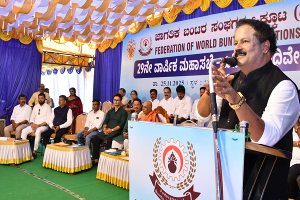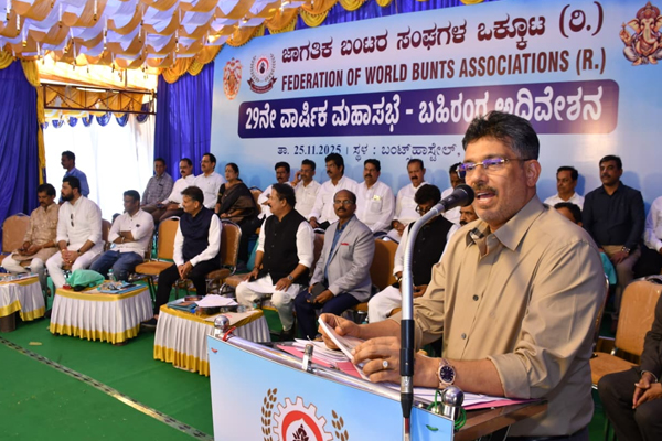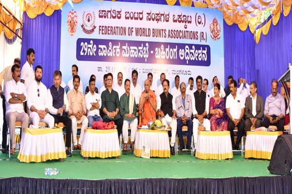 ಮಂಗಳೂರು, ನ. 25 (DaijiworldNews/AA): ಜಾಗತಿಕ ಬಂಟರ ಸಂಘಗಳ ಒಕ್ಕೂಟ ಇದರ 29ನೇ ವಾರ್ಷಿಕ ಮಹಾಸಭೆ ಬಹಿರಂಗ ಅಧಿವೇಶನ ಮತ್ತು ಸಾಧಕರಿಗೆ ಸನ್ಮಾನ ಕಾರ್ಯಕ್ರಮ ಬಂಟ್ಸ್ ಹಾಸ್ಟೆಲ್ ಬಳಿಯ ಬಂಟರ ಯಾನೆ ನಾಡವರ ಮಾತೃ ಸಂಘದ ಮೈದಾನದಲ್ಲಿ ಜರುಗಿತು.
