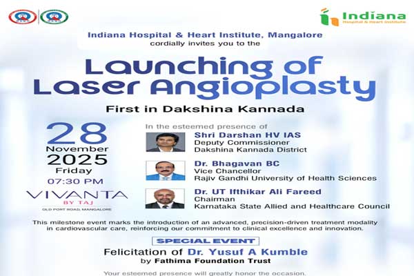 ಮಂಗಳೂರು, ನ. 27 (DaijiworldNews/AK): ಕರ್ನಾಟಕದ ಕರಾವಳಿ ಜಿಲ್ಲೆಗಳಲ್ಲಿಯೇ ಮೊದಲ ಬಾರಿಗೆ, ಹೃದ್ರೋಗ ಚಿಕಿತ್ಸೆಯಲ್ಲಿ ಮತ್ತೊಂದು ಮಹತ್ವದ ಮುನ್ನಡೆಯಾಗಿ ಮಂಗಳೂರಿನ ಇಂಡಿಯಾನಾ ಹಾಸ್ಪಿಟಲ್ & ಹಾರ್ಟ್ ಇನ್ಸ್ಟಿಟ್ಯೂಟ್ ತನ್ನ ರೋಗಿಗಳಿಗೆ ಲೇಸರ್ ಆಂಜಿಯೋಪ್ಲ್ಯಾಸ್ಟಿ ಚಿಕಿತ್ಸೆಯನ್ನು ಆರಂಭಿಸಿದೆ.