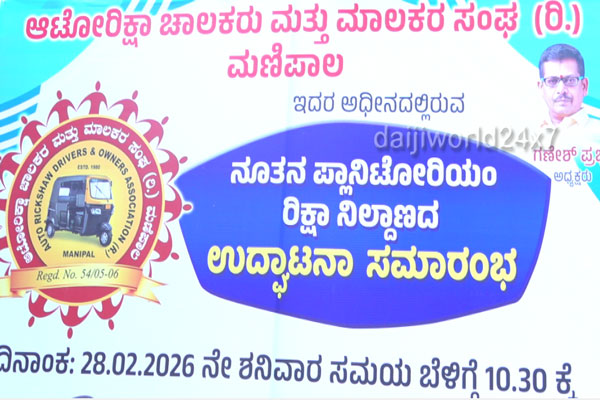 ಉಡುಪಿ, ಮಾ. 01 (DaijiworldNews/TA): ಮಣಿಪಾಲ ಆಟೋರಿಕ್ಷಾ ಚಾಲಕರು ಮತ್ತು ಮಾಲಕರ ಸಂಘದ ವತಿಯಿಂದ ಪ್ಲಾನಿಟೋರಿಯಂ ಬಳಿ ಫೆಬ್ರವರಿ 28ರಂದು ರಿಕ್ಷಾ ನಿಲ್ದಾಣದ ಉದ್ಘಾಟನೆ ನಡೆಯಿತು. ಸಂಘದ ಗೌರವ್ಯಾಧ್ಯಕ್ಷ ಹಾಗೂ ಉಡುಪಿ ವಿಧಾನಸಭಾ ಕ್ಷೇತ್ರದ ಶಾಸಕ ಯಶ್ ಪಾಲ್ ಸುವರ್ಣ ಅವರು ಉದ್ಘಾಟಿಸಿದರು.