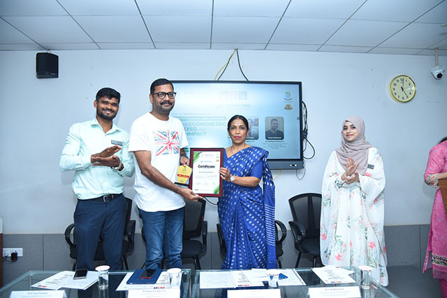 The Guest of Honour, Dr Santosh Kumar P K, commended the organising team for their meticulous planning and hospitality and extended his best wishes to participants in their future research endeavours. Prof Niyaz Panakaje, in his concluding remarks, reflected on the significant contributions of Prof Arun A Bagwath and Prof Rekha in shaping the growth of the research ecosystem and articulated the institutionâs vision to strengthen econometric research through collaborative workshops and initiatives.