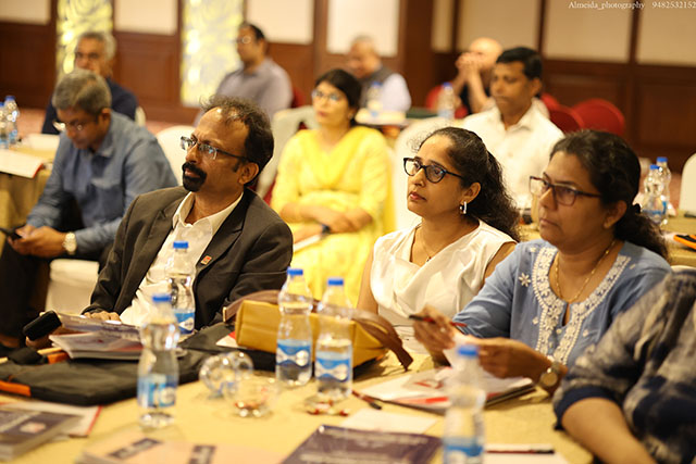 After a short break, the masterclass resumed with Edwin D’Souza, director of the Financial Literacy Center, SBI, who spoke on the importance of maintaining a high personal and business credit score. He explained the relevance of the CIBIL score, introduced account and insurance products, and discussed various government insurance schemes. His session generated keen engagement and questions from participants.