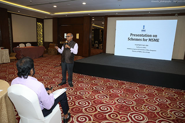 R Gopinath Rao, retired deputy director, MSME Development & Facilitation Office (GOI), spoke on ‘Funding Options Available under State and Central Government Schemes’. Drawing on over 25 years of experience in MSME promotion, Rao emphasised empowering entrepreneurs, building awareness of schemes, and encouraging digital transformation. He noted that digitisation eased registration, enabled access to funding, and supported women and minority entrepreneurs. He also highlighted the mindset shift from job-seeking to entrepreneurship and stressed leveraging cluster development to sustain businesses.