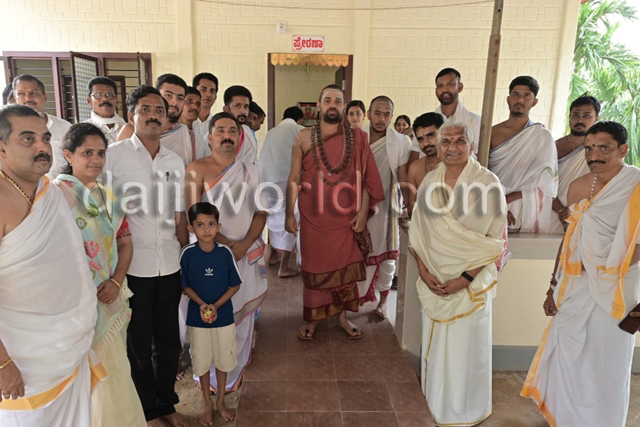 The newly built house was handed over in the presence of Jagadguru Sri Vidhushekhara Bharathi Swamiji of Sringeri Sharada Peetha and Dr Kalladka Prabhakar Bhatt, president of Vivekananda Vidyavardhaka Sangha, Puttur.