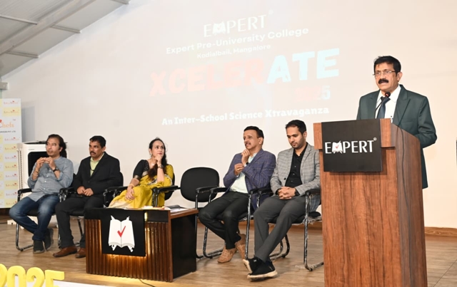 Mangaluru, Oct 18: Expert Pre-University College, under the Expert Group of Institutions, hosted the inaugural edition of Xcelerate 2025, an Inter-School Science Xtravaganza that united young innovators from Dakshina Kannada and Udupi districts. Held at the Kodialbail campus, the fest featured four engaging categories — X-Quizit, X-IgnAIte, X-Zibit, and X-Sight — designed to spark curiosity and hands-on learning in STEM.