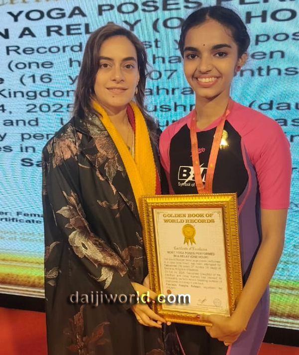 Bahrain, Oct 25: Yoga prodigy Tanushree Pithrody has once again etched her name in history by breaking her own previous record and achieving her 10th world record. She performed an astounding 333 yoga asanas in 50 minutes, earning recognition from the Golden Book of World Records.