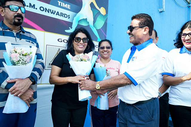 The ceremony continued with a welcome address by Leo Rodrigues, followed by the felicitation of two long-standing throwball players and sports enthusiasts — Sebastian Pais and Cynthia D'Cunha, in recognition of their contribution to the sport and community.