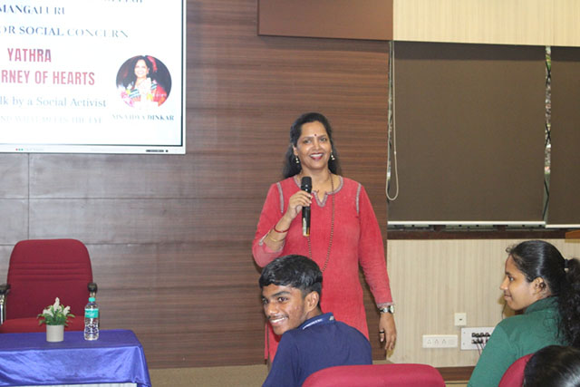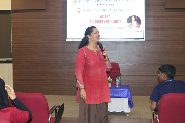 Mangaluru, Oct 28: Centre for Social Concern (CSC) of St Aloysius Pre-University College, Mangaluru, organised a thought-provoking talk by Vidya Dinker, a renowned social activist known for her work in civic engagement, social justice, and environmental causes.