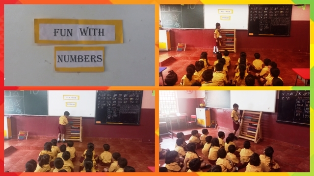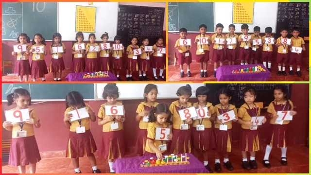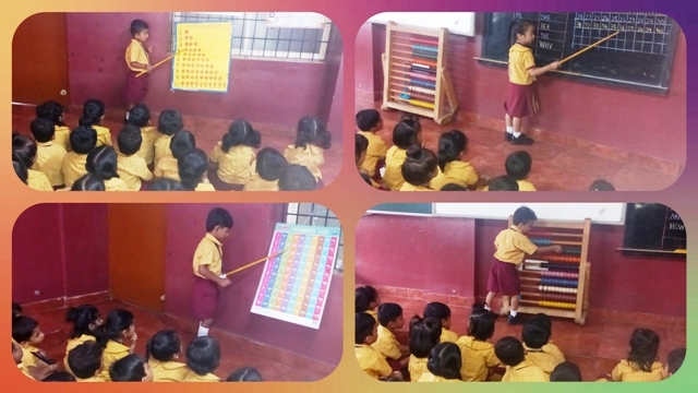 Further, the children took part in an exciting 'Fun with Numbers' activity where they learned to count numbers from 1 to 40 using the abacus and other play-way methods. They explored the concept of number value using the abacus and marbles, which helped them understand the idea of 'how many' and improved their counting and quantity skills.