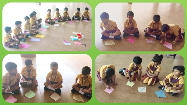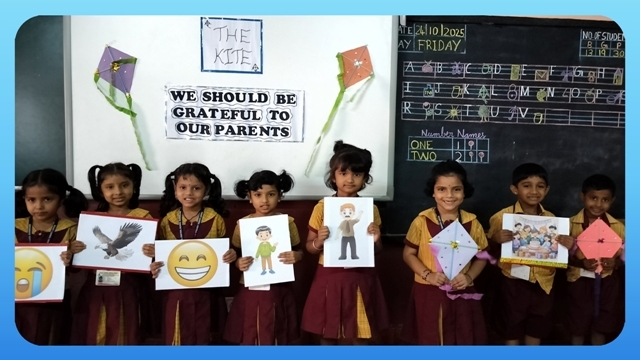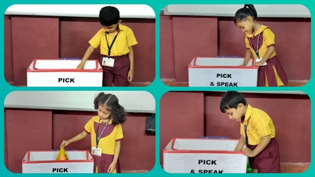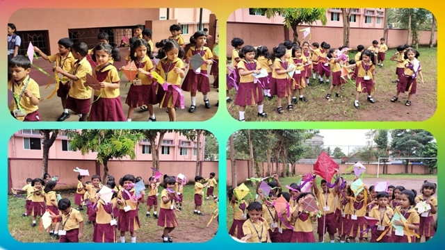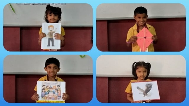In another activity, the children made colourful kites using bright paper, straws, and streamers. After completing their kites, the children went outside to fly them. The sky looked down cheerfully as the children were flying their kites and were filled with joy and excitement. Later, they took part in a Pick and Speak activity based on theme 'The Kite' where each child spoke a few lines about 'My Kite'.