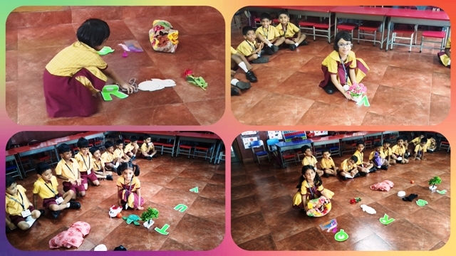 To make learning exciting, the teacher placed objects inside a mystery bag. One by one, the children, picked an object, named it and were able to connect it to the first letter with its sound, followed by placing the object to its letter. Their curiosity was at its peak as they picked up new things. They also sang the Jolly Phonics rhymes, linking the sounds to the objects they had explored.