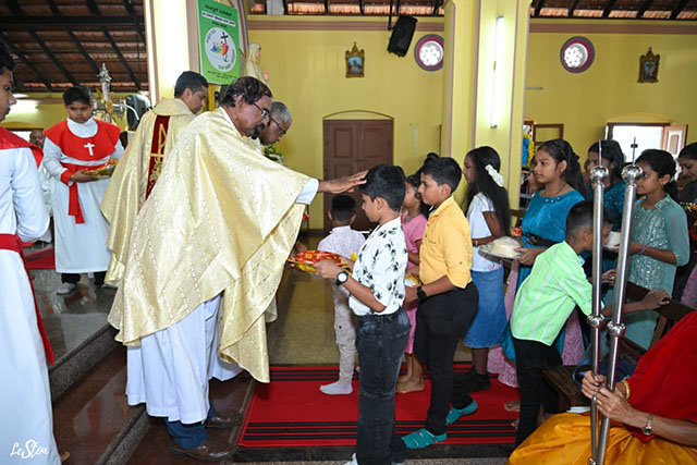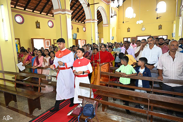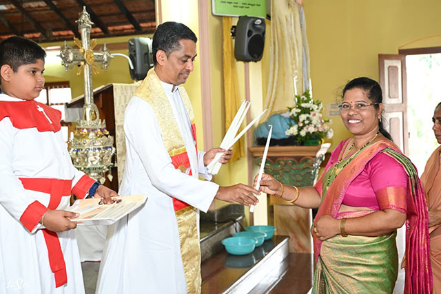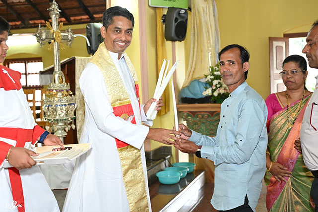 The celebration began with Fr Anil Roshan Lobo, parish priest of Nirkan Church, distributing candles to all the Murdom and donors of the feast as a gesture of gratitude and blessing.