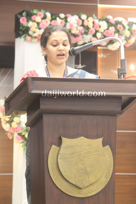 Dhyanaja Alva A, software engineer II at Microsoft and proud alumnus of SJEC, inaugurated the event and delivered an impactful address. Speaking to budding technologists, he said, “I never imagined returning here as a chief guest after joining Microsoft. What matters most is not having everything figured out, but showing up every day with curiosity and consistency. Small steps — projects, labs, experiments add up and shape your future.”