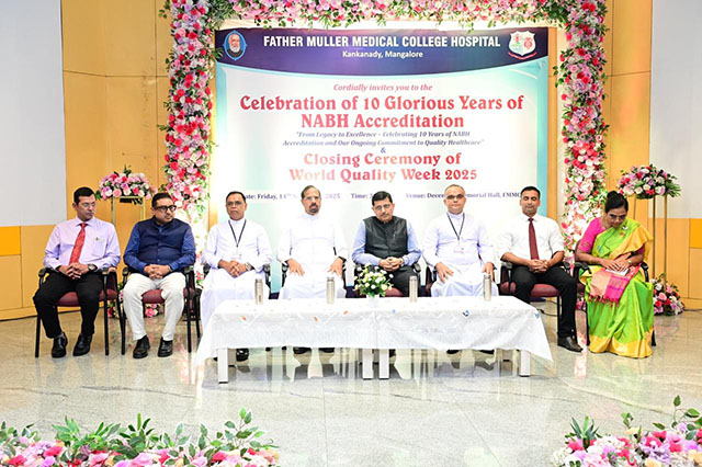 Mangaluru, Nov 22: Father Muller Medical College Hospital (FMMCH) celebrated a major milestone with the completion of 10 years of NABH accreditation and the closing ceremony of World Quality Week 2025, held under the theme “Think Differently.”