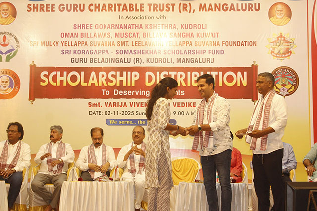 Mangaluru, Nov 24: Billava Sangha Kuwait (BSK) proudly marks the tenth year of its education programme, dedicated to supporting less privileged yet deserving students of the community. Inspired by Brahma Shree Narayana Guru’s profound message, ‘Education Liberates Oneself,’ BSK launched this scholarship initiative in 2016 in collaboration with Shree Guru Charitable Trust, Surathkal, Mangaluru.