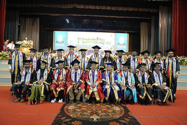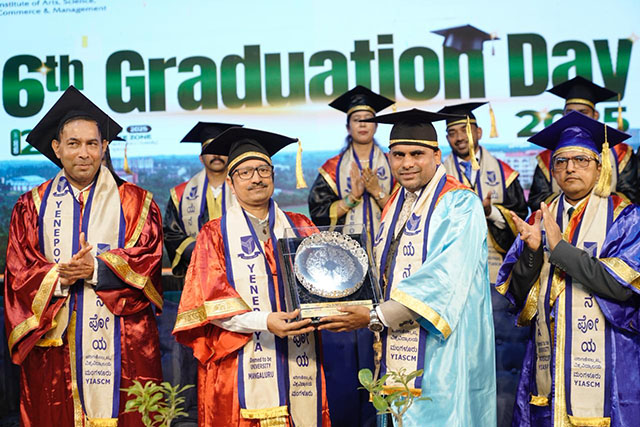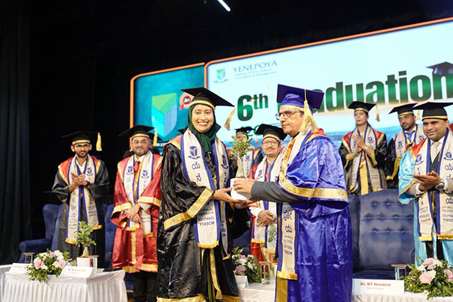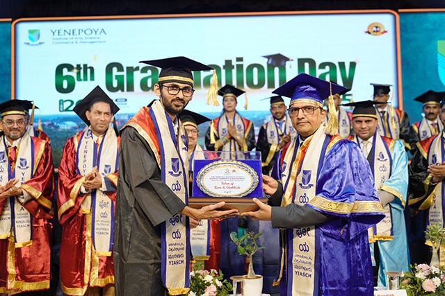 Guest of honour Dr B T Nandish, controller of examinations, Yenepoya (Deemed to be University), mentioned that a degree symbolises a commitment to contribute to society, not merely a qualification. Using the analogy of the bamboo tree that takes years to root before rising rapidly, he underlined the value of patience and depth in personal growth. He urged graduates to pursue significance over success, build confidence and critical thinking, and uplift others through their journey. “You are ambassadors of Yenepoya,” he said, calling on them to carry the institution’s virtues with pride.