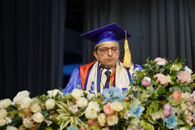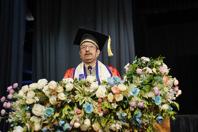 Guest of honour Prof Arun A Bhagwath, CEO, Yenepoya International School, KSA, highlighted the milestone of this batch being the first to graduate under NEP 2020. He appreciated the faculty members for their extensive effort in reconstructing the curriculum and aligning it with global requirements. Warning that AI and automation will reshape the education system in the next decade, he emphasised the need for upskilling, deep-skilling and strengthening cognitive, psychomotor and innovative abilities. He also touched on global technological rivalries, including advances in quantum computing, and urged students to remain motivated, continuous learners who contribute meaningfully to society.