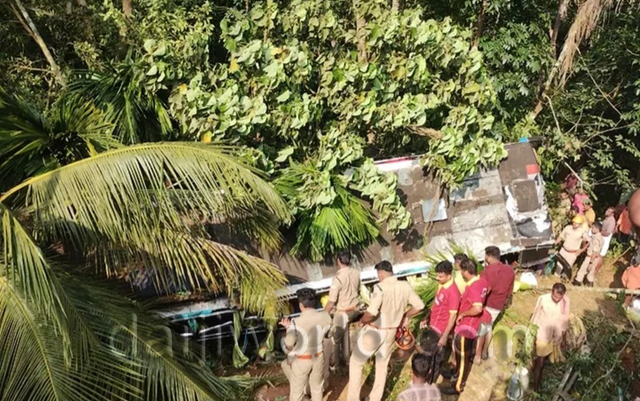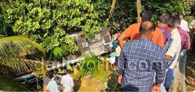 The mishap occurred around 2.50 pm when the bus lost control at a curve near Kutti Kaval and plunged about 30 feet down the slope. Local residents and police immediately rushed to the spot and shifted the injured to hospitals in Pariyaram, Cherupuzha and Payyanur.