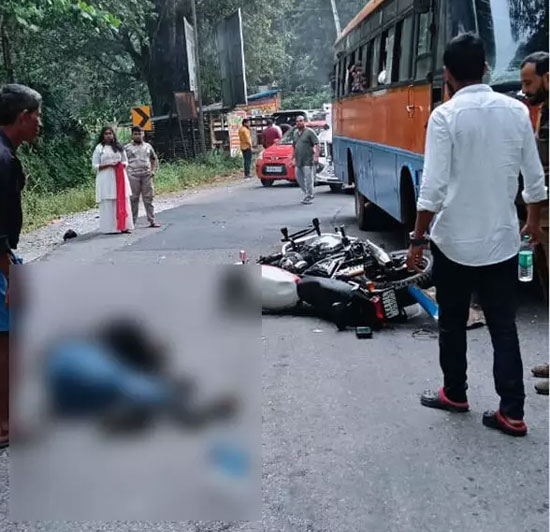 According to sources, the accident occurred when a government bus heading towards Dharmasthala collided with a bike travelling from Dharmasthala towards Bengaluru. The impact was so severe that the rider died instantly.