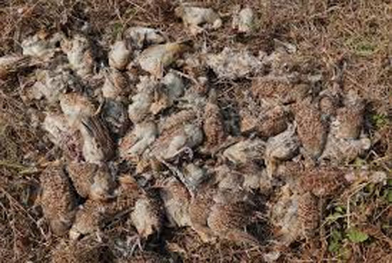 Mumbai, Dec 6: A shocking discovery in Dombivli (West) has stirred concern among residents after a birder found 107 dead Grey Francolins (titar) near the creek in the Saptapul area of Motagaon. The unusually high number of fatalities prompted forest officials to launch an urgent investigation and send samples to the National Institute of Virology (NIV), Pune, to rule out infections or poisoning.