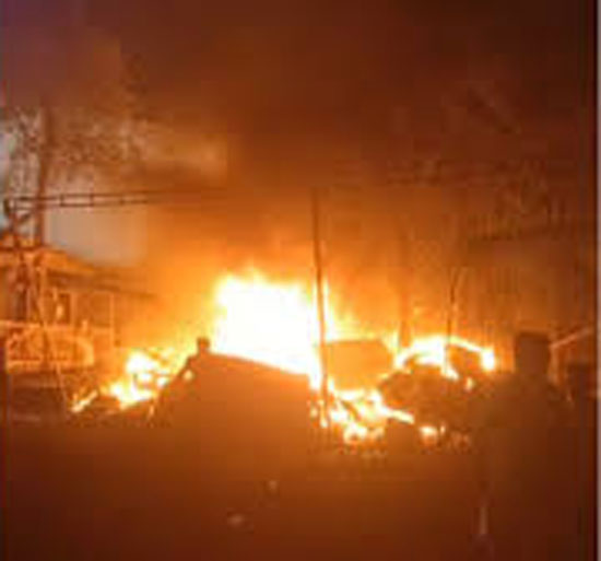 Fire brigade officials rushed to the spot with two fire engines, a rescue vehicle and a utility vehicle. The blaze was brought under control by around midnight.