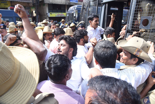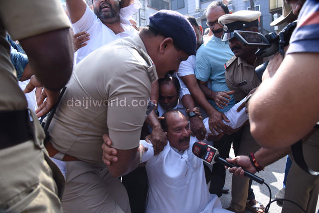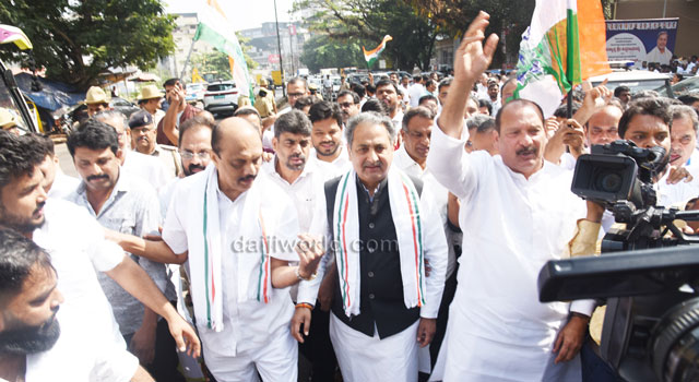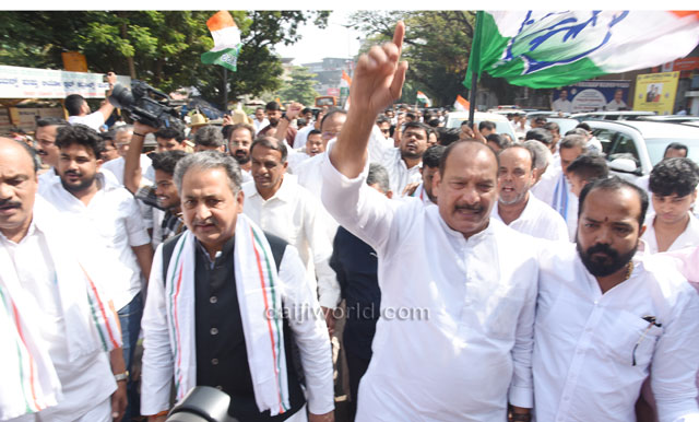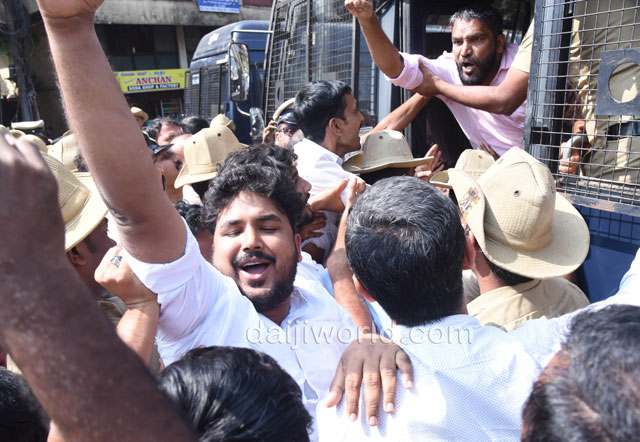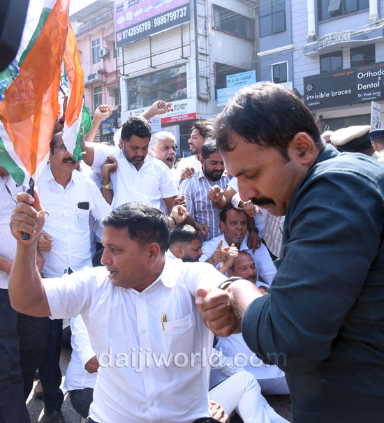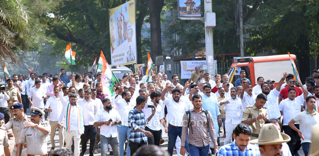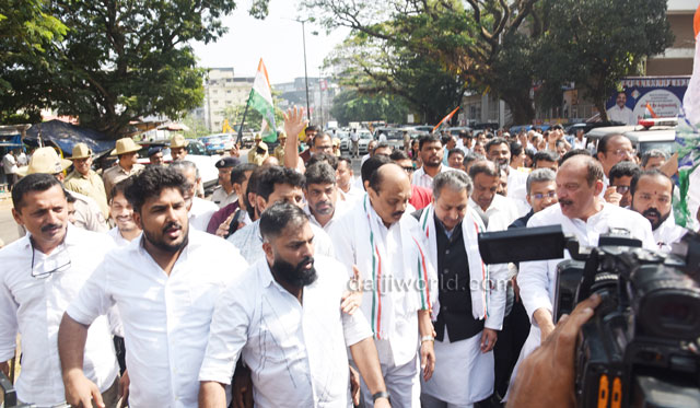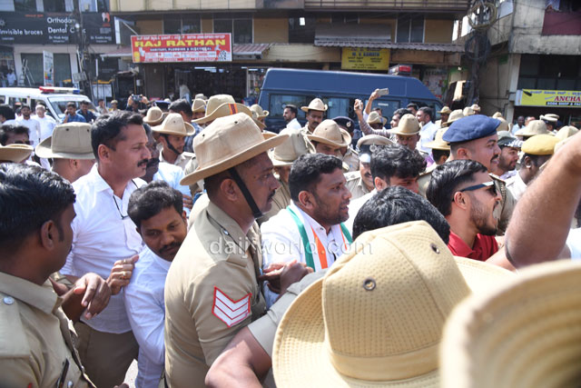 As part of the protest, Congress workers and leaders began a padayatra from the Congress Bhavan at Mallikatte towards the district BJP office. However, police intervened at Mallikatte Junction itself and stopped the procession, taking the protesting workers into custody.