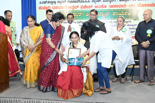 Clara Arun D’Cunha (social service), Evette Remona Pereira (Bharatanatyam), Rohit Sanctus (social service), Christopher D'Souza Ninasam (theatre), Wilson D'Souza Kayyar (art), Glanish Jude Martis Alangar (literature), Bernard J Costa Kundapura (drama and digital journalism) were felicitated with shawls, certificates, citations and mementos. Avil Rasquinha (Value-Based Konkani Journalism) was felicitated with Lifetime Achievement Award by Dr Chandralekha D'Souza and Fr Chetan Lobo. His third collection of poems 'Pavsa Thembe' was released on the occasion.