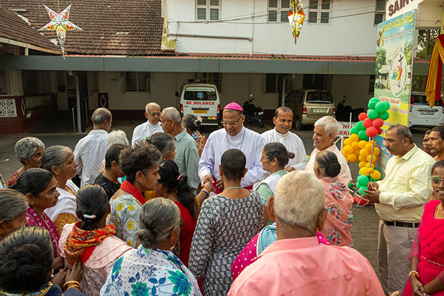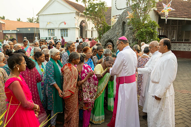 Mangaluru, Dec 25: Dr Peter Paul Saldanha, the bishop of Mangalore, celebrated the joy of Christmas with the residents of St Anthony Ashram, Jeppu, on Thursday morning. The bishop presided over the festive Solemn Mass, praying specifically for the inmates, donors, well-wishers, and the dedicated staff who sustain the charitable mission of the ashram.