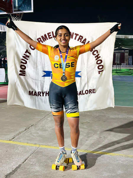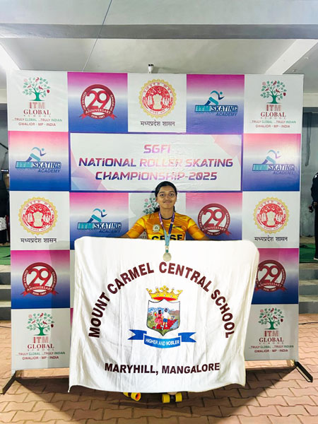 Mangaluru, Dec 29: Jesnia Correa, a student of grade IX of Mount Carmel Central School, has brought immense pride and honour to the institution by winning the silver medal in the 1000-metre Rink Race in under-17 category, at the 69th Roller Skating Championship conducted by the School Games Federation of India (SGFI).