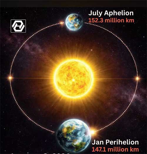 This year, the Earth will reach perihelion on January 3 and aphelion on July 6. These phenomena occur due to the elliptical orbits of the Earth around the Sun and the Moon around the Earth.