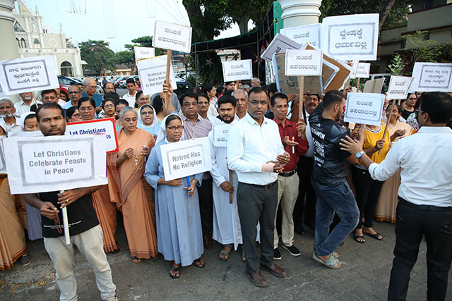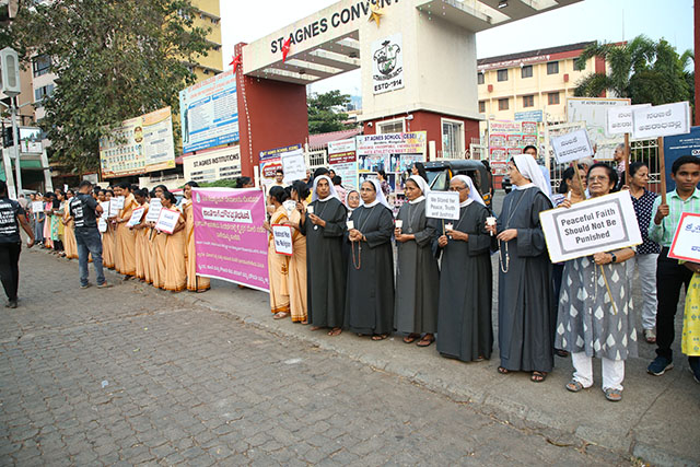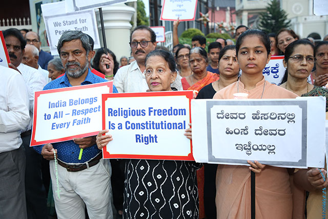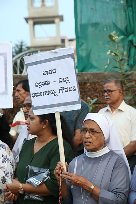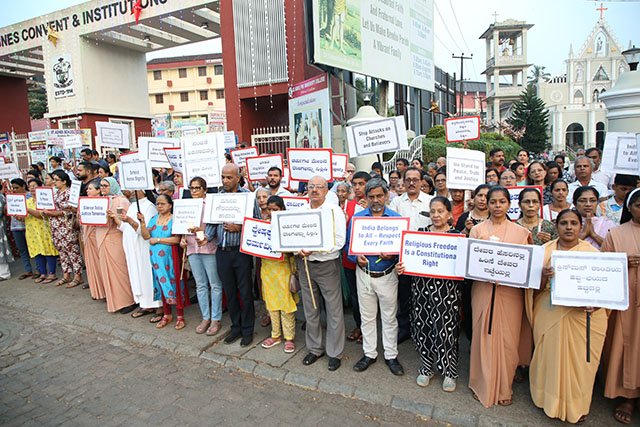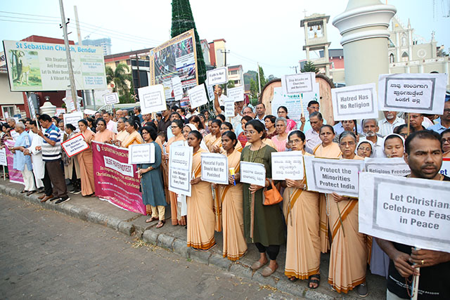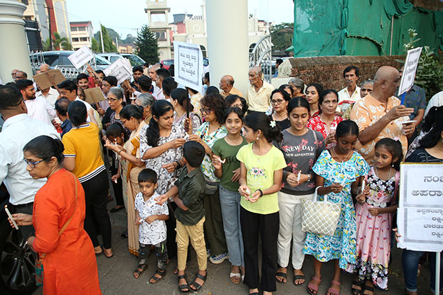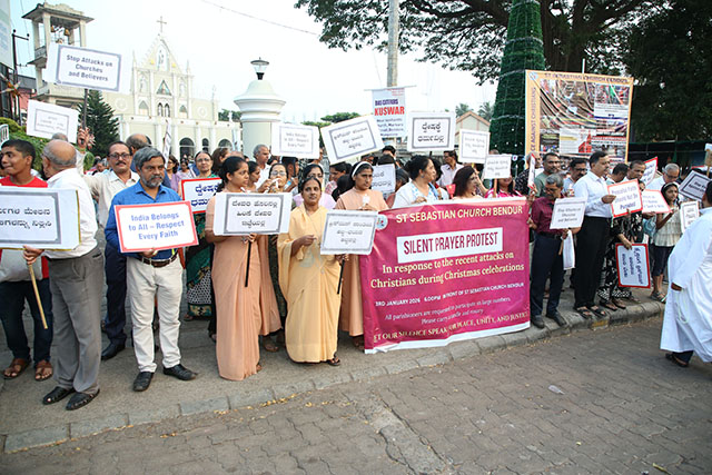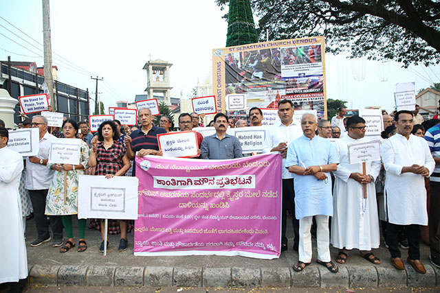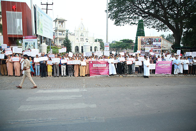 Mangaluru: Silent prayer protest against attacks on Christians at Bendur church