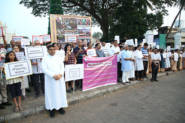 Title: Mangaluru: Silent prayer protest against attacks on Christians at Bendur church