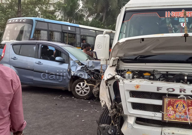 The collision caused extensive damage to the Ritz car. The car driver sustained injuries and was admitted to Manipal Hospital for treatment. No serious injuries were reported among the devotees.
