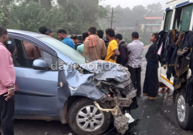 Udupi, Jan 4: An accident was reported at the Canara Bank junction in Parkala on Sunday, January 4 morning after a Ritz car lost control due to dense fog and collided with a van carrying Ayyappa devotees.