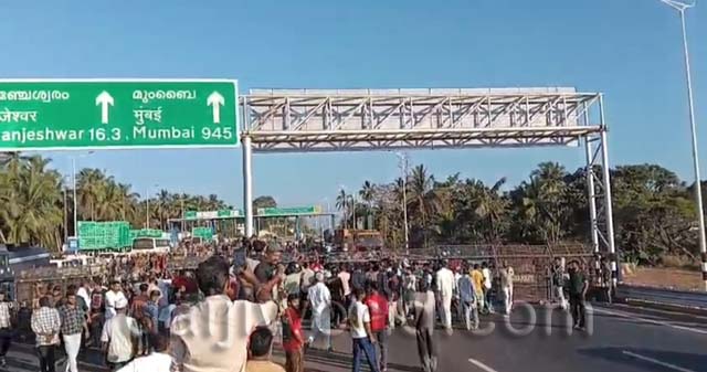 Kasargod, Jan 12: Protests erupted against the collection of toll fees on National Highway 66 at Kumbale Arikkady between Kasargod and Mangaluru, during which police detained more than 60 persons, including Manjeshwar MLA AKM Ashraf, on Monday January 12.