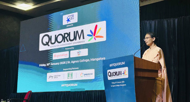 Mangaluru, Jan 17: St. Agnes College (Autonomous), Mangaluru, the department of business administration (MBA), and Reputation jointly organised QUORUM – the Reputation Management Conference on Friday January 16, bringing together industry experts and professionals. The full-day event, brought together students, faculty members and industry professionals to explore emerging trends in reputation management, corporate communications, brand strategy and corporate identity.
