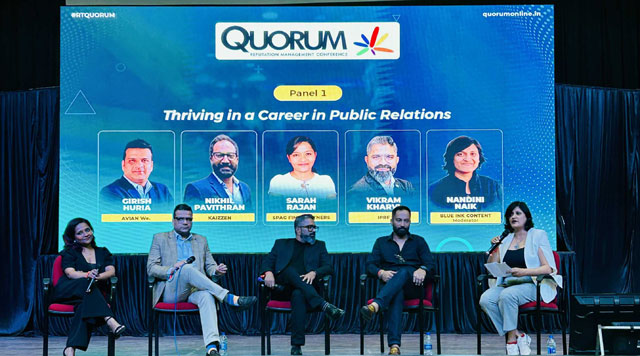 In addition to the keynote sessions, expert panel discussions were held after noon as part of QUORUM. The first panel, ‘Thriving in a Career in Public Relations’ featured Girish Huria of Avian We, Nikhil Pavithran of Kaizzen, Sarah Rajan from SPAG FINN Partners, VikramKharvi of IPRF and Nandini Naik from Blue Ink Content. The second panel, ‘Working Towards Your Dream Job’ brought together Bhavna Imran of Corteva, Hina Issar Huria from The Promise Foundation, Nivedeeta Moirangthem of IKEA, Seema Ahuja of Biocon, Yatin Padia of Arvind and Sarika Chavan from Sparkle Gift Cards. The third panel discussion, titled ‘Building a Personal Brand in Your 20s’ featured Amit Arora of Brand VD, Ira Pradhan from Freshworks, Nidhi Gulati of Springer Nature, Richa Seth from Adfactors PR, Rudolph Noronha from MRPL and Diana Fernandes of Bloomingdale PR.