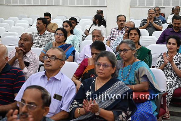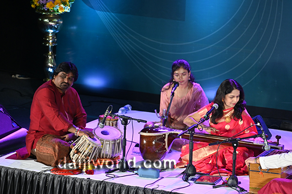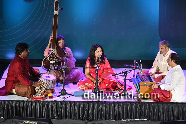 Renowned Hindustani classical vocalist Savani Shende Sathe captivated the gathering with her powerful and soulful performance. Her renditions in Khayal, Thumri and Dadra showcased her mastery, leaving the audience enthralled throughout the evening. She was accompanied by Guruprasad Hegde on harmonium and Shridhar Mandre on tabla, Nagraj Shet on Manjira and Shrithi Vaidya on Tanpura, whose expert support elevated the musical experience.