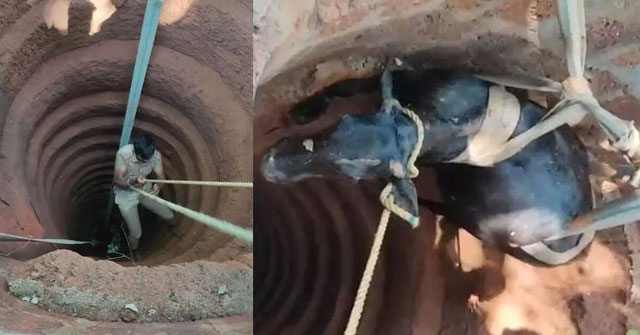 The well, belonging to resident Jayaram Gowda, measures around 60 feet in depth and five feet in width. Family members and locals who spotted the cow immediately alerted the fire department.